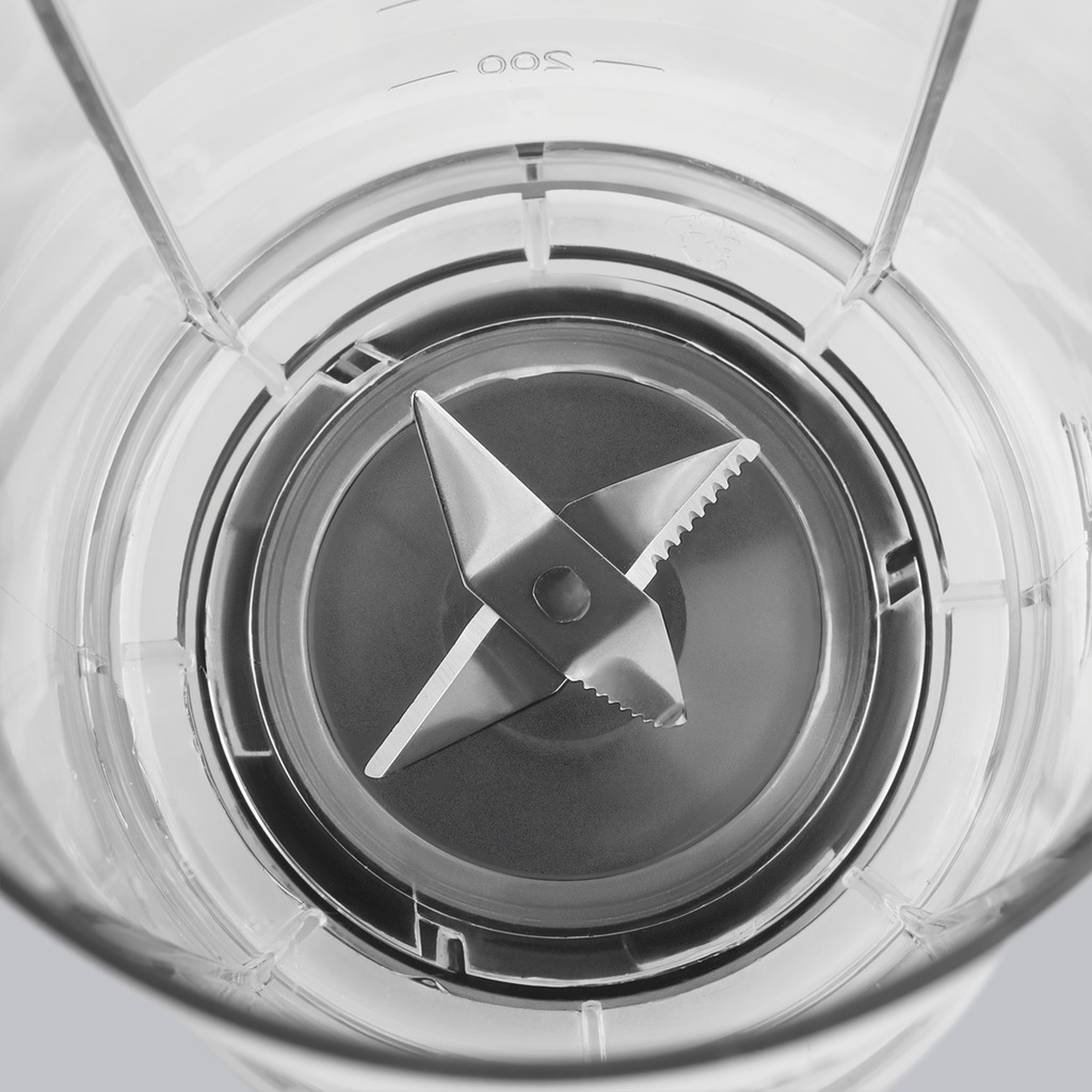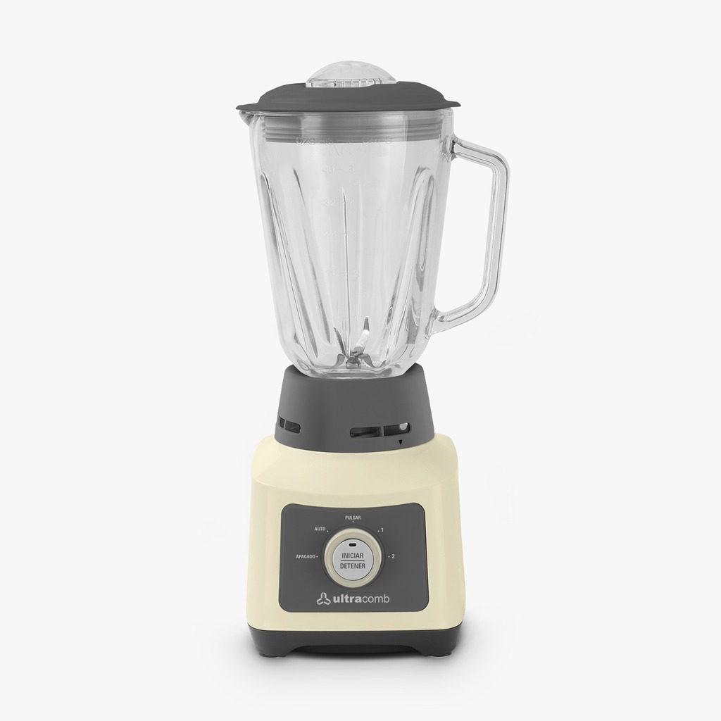 Jarra de vidrio graduada de 1,5 lts. Potente motor de 700W 2 Velocidades + pulsador (auto limpieza y batido espeso) 1 Función de licuado con variación de velocidad automática. Cuchillas (4 hojas) de acero inoxidable Tapa con sistema anti derrame Sobretapa para inspección y dosificador Apoyos antideslizantes Elegante diseño y sólida construcción Puede con todo tipo de alimentos, incluso hielo. Prepara cremas, salsas, batidos, cócteles y consigue texturas perfectas en cuestión de segundos.